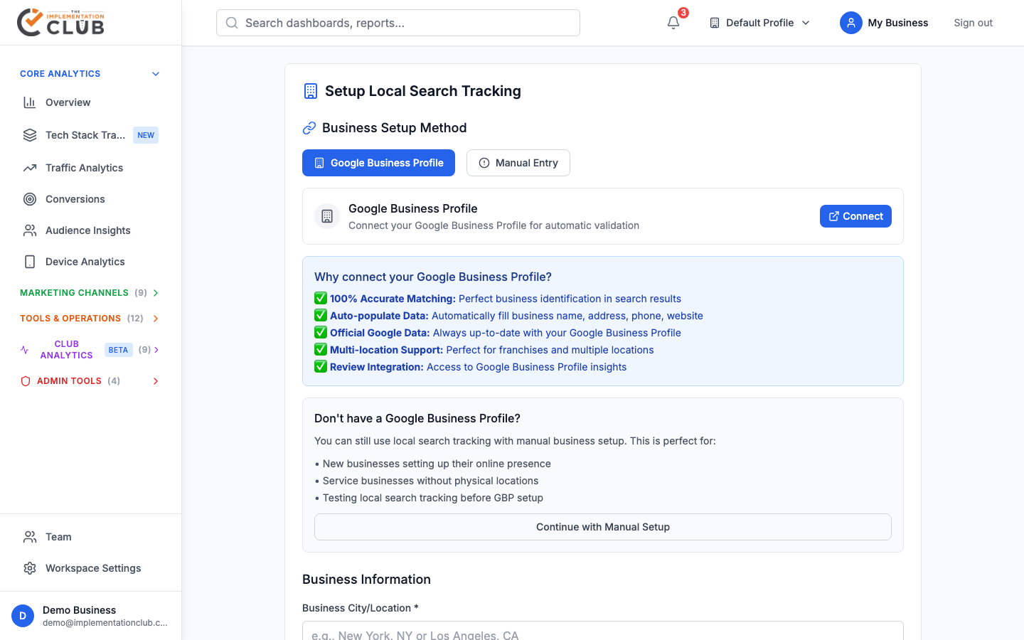 Implementation Club members use Local Search Tracking to prioritize their content strategy, identify citation building opportunities, and track the results of SEO campaigns they run during Thursday implementation sessions.