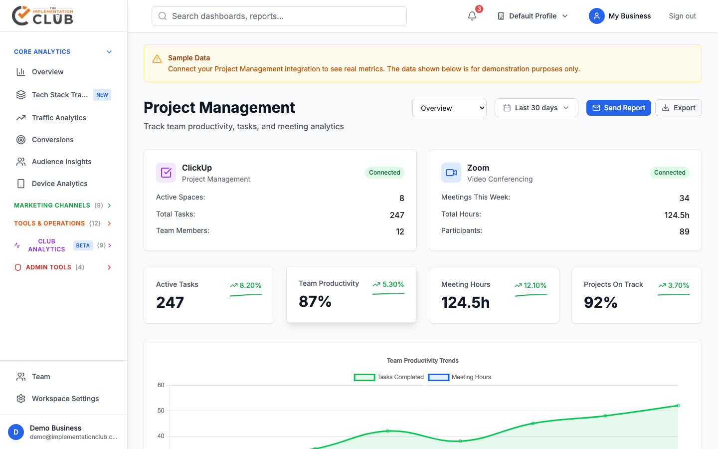 Manage projects, tasks, and deliverables directly inside your Implementation Club portal — track what's in progress, what's done, and what's next.