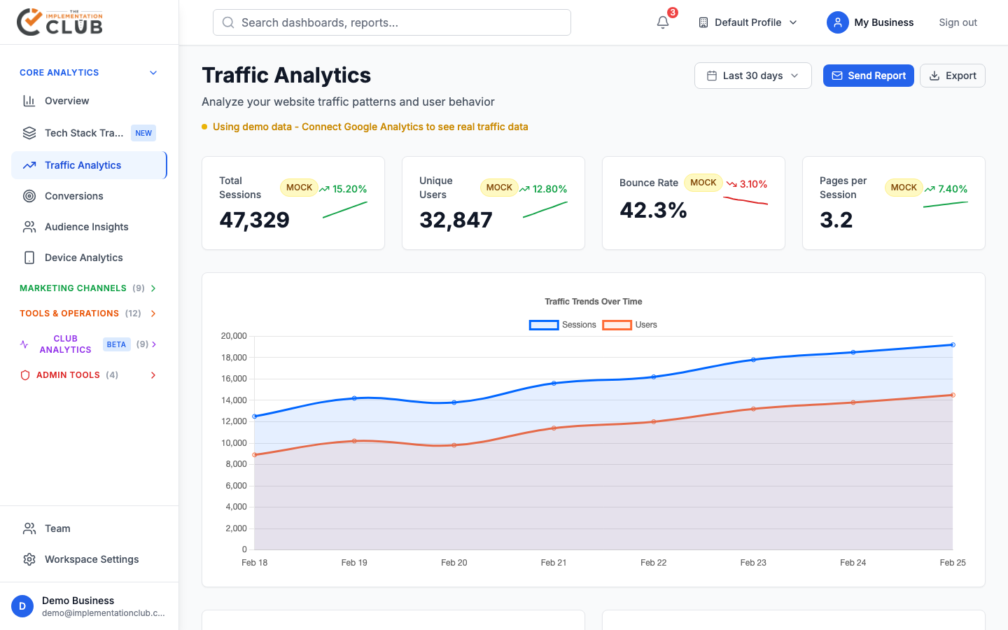 Ready to stop guessing and start knowing? Join the Implementation Club and get access to Traffic Analytics plus 30+ other tools for your business.